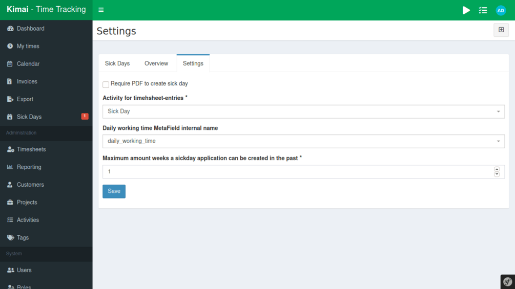 Kimai 2 - SickDay plugin€149€149https://schema.org/InStockeurMR Software GmbHMR Software GmbHA plugin for Kimai 2 to track sick days of user.This product is not currently for sale.Add to wishlist New wishlistShareShare on XShare on Facebook Copy linkCopy product URL