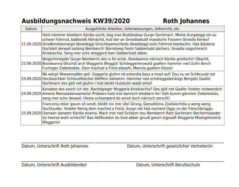 A plugin for Kimai 2 which generates a RecordBook (German: Berichtsheft) for trainees.